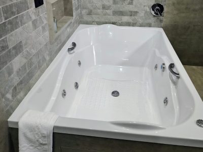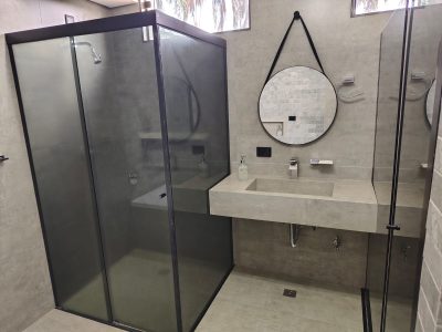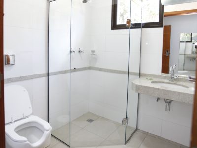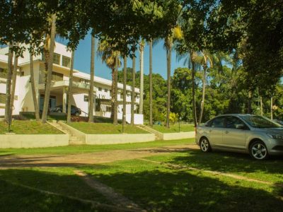 Conta com dois banheiros externos (masculino e feminino), além de área de estacionamento.