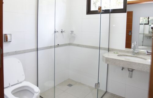Conta com dois banheiros externos (masculino e feminino), além de área de estacionamento.
